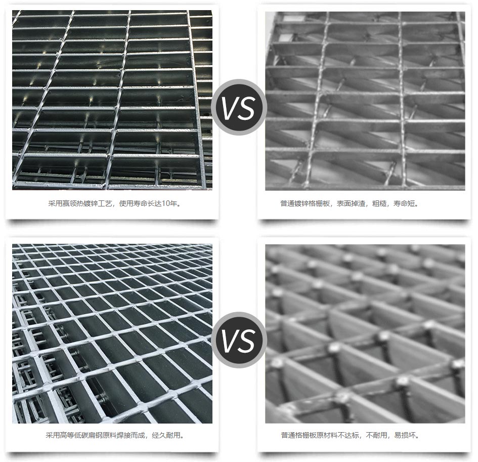 復合鋼格板是由有一定橫跨承載能力的鋼格板及密封表面的花紋板構成的一種產(chǎn)品。復合鋼格板經(jīng)熱浸鋅處理后,因熱力會產(chǎn)生翹曲變形,尤其是選用較大型號的鋼格板,校平比較困難,請注意選型。